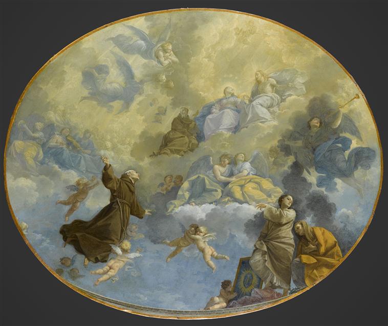 commandé par le comte Giuseppe Antonio Bianchini en vue de la décoration de la voûte de l'église San Bernardino de Lavino qui ne fut pas réalisée ; pendant : la glorification de saint Antoine de Padoue ; numéro d'inventaire de l'autre élément : RF 1983 55