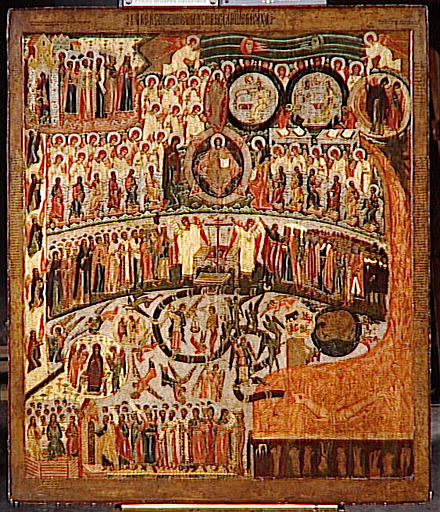scène biblique (Jugement Dernier, Christ juge, élu, damné, Les apôtres)
