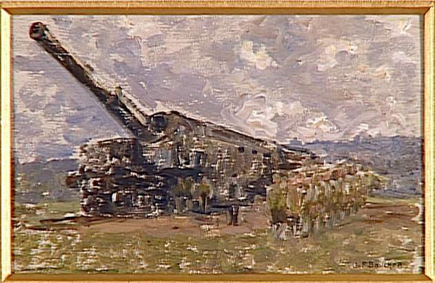 paysage (Première Guerre mondiale, pré, canon, soldat : Américain, colline, ciel, nuage)