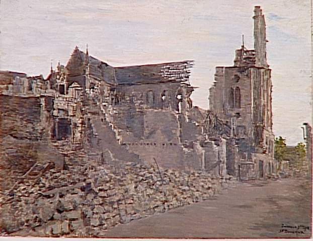 La cathédrale de Soissons coupée en deux par les obus, septembre 1918