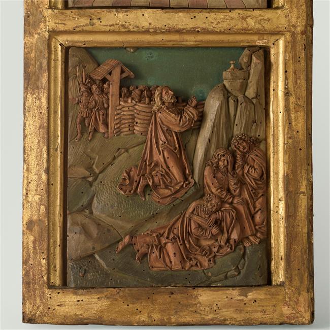 scène biblique (Crucifixion, sainte Madeleine, Les larrons) ; scène biblique (Dérision du Christ) ; scène biblique (Jésus présenté au peuple, vieux) ; scène biblique (Flagellation du Christ) ; scène biblique (Jardin des Oliviers)