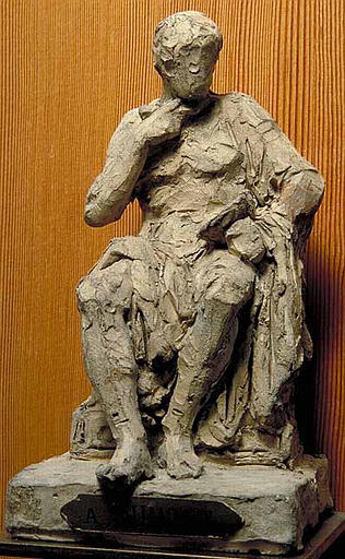 esquisse pour la figure en pierre devenue 'La Scupture' décorant le pavillon Lesdiguières au Louvre en 1867 ; modèle en plâtre commandé en 1867, exposé au Salon de 1868, conservé à Semur-en-Auxois