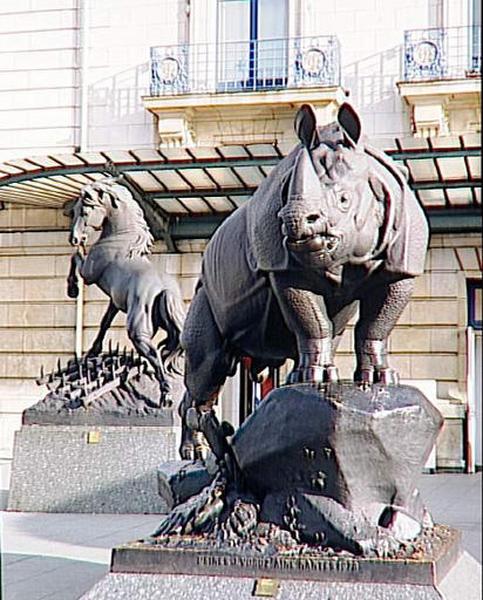 commande de l'Etat en 1878 pour le palais du Trocadéro à l'occasion de l'exposition universelle de 1878 ; provient de l'angle arrière droit du bassin du palais du Trocadéro. Sculpture exécutée dans les usines de J. Voruz Aîné à Nantes en 1878 ; placé à Paris, porte de Saint-Cloud de 1935 environ à 1985