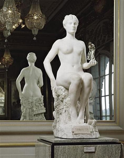 réductions en bronze par Siot-Decauville (H. 0, 75m) ; exemplaire grandeur nature de l'original, provenant du monument de Gérôme inauguré en 1913 et démembré vers 1930, à Vesoul ; Tanagra apparaît dans plusieurs peintures de Gérôme ; exemplaires en plâtre et marbre polychrome de la Sanseuse au cerceau ; éditions en bronze par Siot-Decauville, en biscuit par Sèvres ; version un peu différente (drapé, position de la tête) éditée en bronze par Siot-Decauville