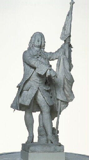 figure (rétrospectif, Dupleix Joseph François, homme, en pied, drapeau, haut fonctionnaire) ; ronde bosse