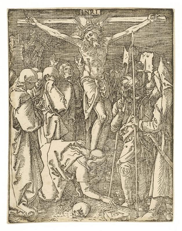monogramme, devant en bas : AD ; inscription manuscrite, Derrière au crayon : B 40 ; 26 ; Christus am Kreuz. ; tampon du musée, derrière, marque circulaire : KUPFERSTICH SAMMLUNG STRASSBURG.