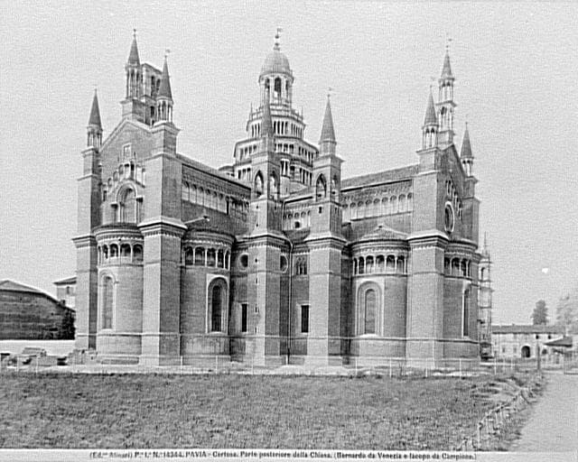 (Dans un cartouche): (Ed.ne Alinari) P.e I.a N.°14344. PAVIA - Certosa. Parte posteriore della Chiesa. (Bernardo da Venezia e Jacopo da Campione.)