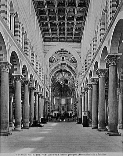 (Dans un cartouche): (Ed.ne Alinari) P.e I.a N.°8591. PISA - Cattedrale. La Navata principale. (Maestri Buschetto e Rainaldus.)