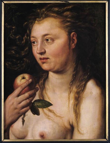 figure biblique (Eve, en buste, nu, pomme)