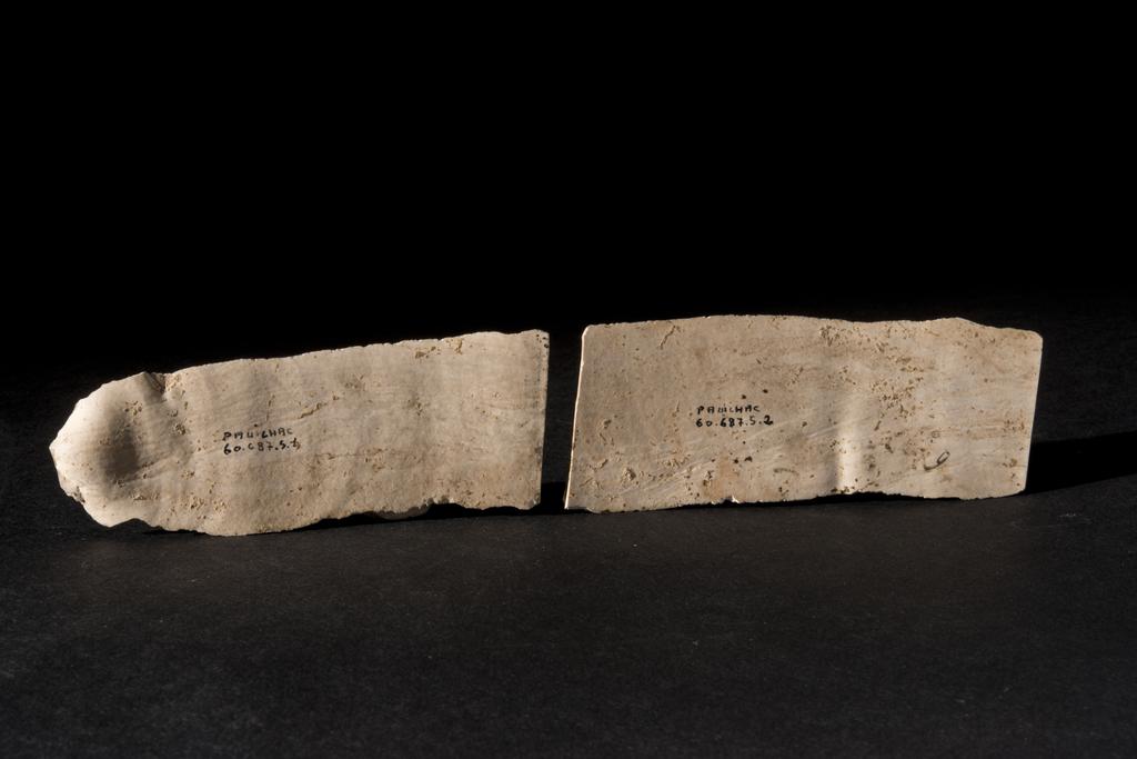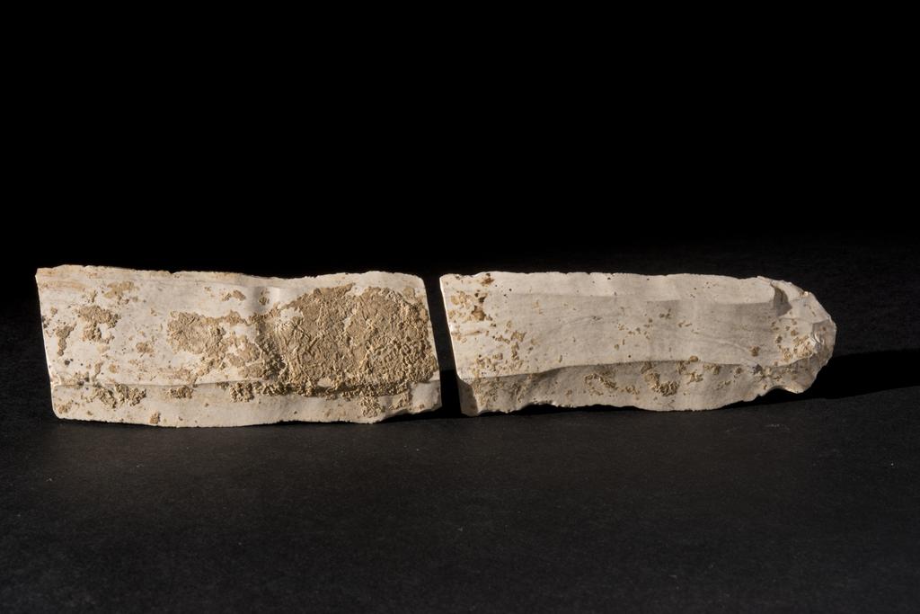 Lame de silex composée de deux fragments séparés. La fragmentation est ancienne.