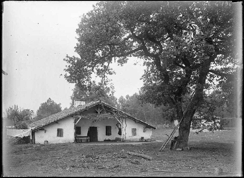 vue d'architecture (Commensacq, maison, grange, échelle, airial, arbre)