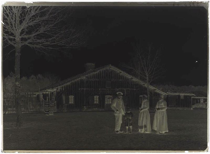 vue d'architecture (Lüe, maison, feuillu, homme, femme, garçon, en pied)