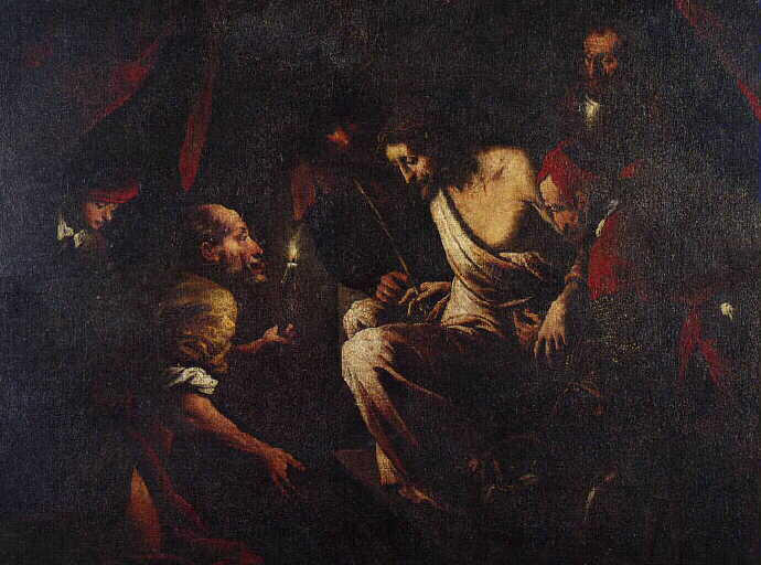 scène biblique (Dérision du Christ, Christ souffrant, bourreau, bougie, baguette)