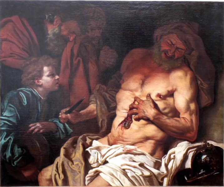 scène (Caton d'Utique, Romain, homme, nu, parlementaire, suicide, enfant)