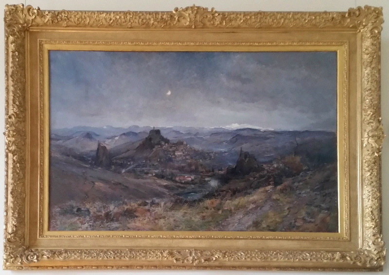 paysage (Le Puy-en-Velay, La Borne, ville, colline, montagne, neige, lune)