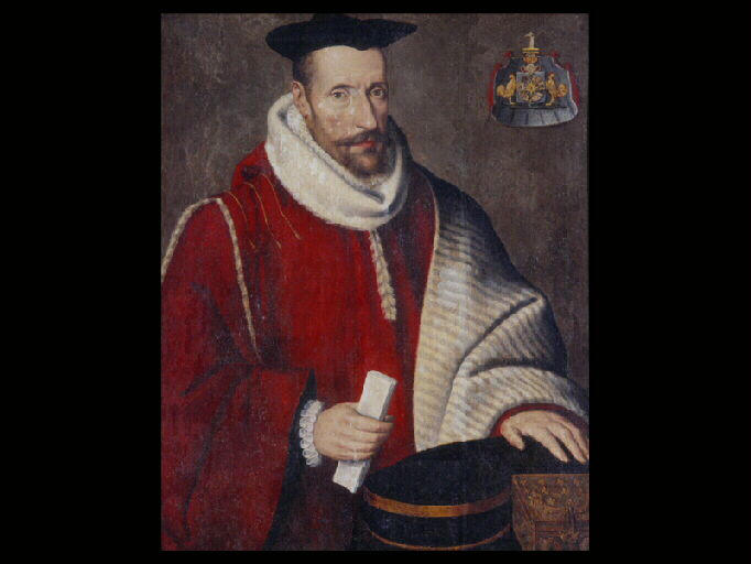 portrait (Godran Odinet, homme, parlementaire : Bourgogne, à mi-corps, de trois-quarts, droit, couvre-chef, armoiries)