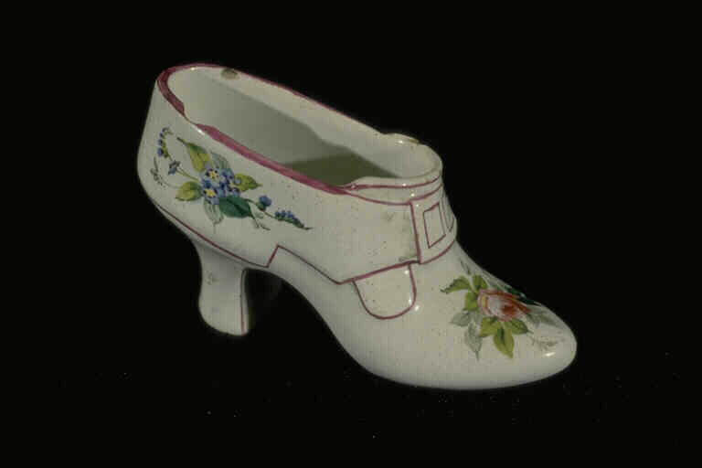 représentation d'objet (chaussure) ; ornement à forme végétale (fleur)