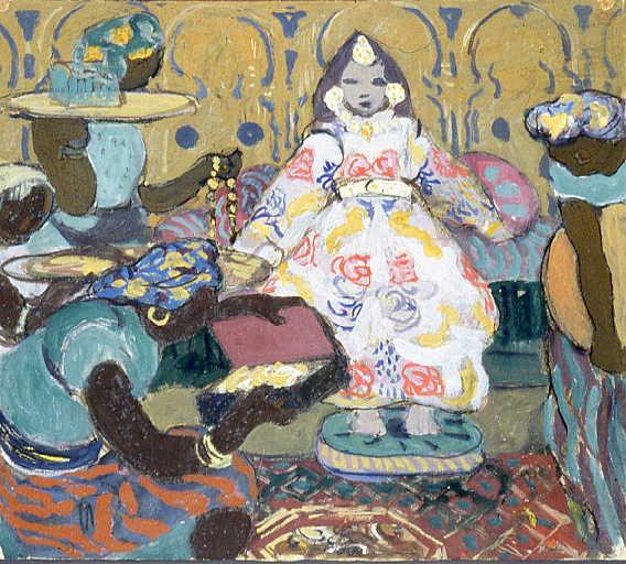Etude pour un tableau de Salon de la Nationale des Beaux-Arts en mai-juin 1923 (Les Offrandes de la fiancée de Fez) ; en rapport avec A. Suréda, Servante marocaine