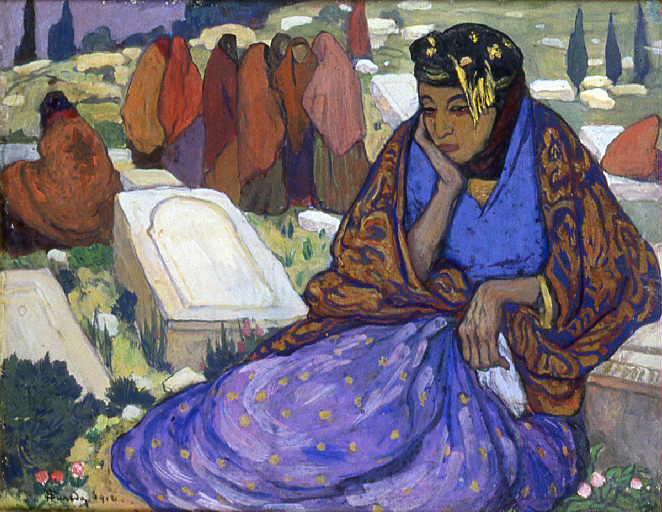 scène (femme, assis, Juif, cimetière, Tlemcen, mort, costume traditionnel)