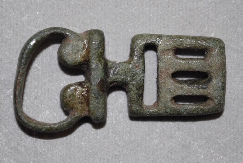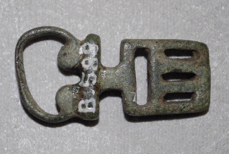 'Les éléments métalliques sont, avec ceux en os, parmi les seuls fragments conservés des meubles en bois aujourd'hui disparus; ceux-ci étaient, comme pour des époques plus récentes, agrémentés d'éléments rapportés en bronze ou en fer, soit utilitaires, et parfois traités avec une volonté ornementale [...], soit purement décoratifs [...]' Autun, Augustodunum, 1987, pp. 101-114 ; 'Les clés de type 3.10, à platine dan le prolongement de l'anneau de préhension. Ces clés développent un riche répertoire ornemental, mais également fonctionnel, au niveau de panneton. En effet, les lumières découpées sur des pièces vierges de toutes ouvertures (des fabrikats sont connus à Vertault), en créant des décorations géométriques, s'adaptent à la glissière de la serrure à laquelle elle est destinée (les formes en positif et en négatifs doivent se compléter). La découverte de dessins communs à plusieurs clés implique qu'elles étaient toutes destinées à actionner la même serrure [...]. Il se peut également que le nombre de gabarits utilisés par l'artisan qui réalise ces clés ne soit pas infini et que le type de mécanismes fabriqués soit limité. Le corpus disponible permet de mettre en évidence des séries de clés possèdant un découpage absolument identique au niveau du panneton [...] : -Serrure n° 1, 4 clés analogues : type 3a (B549) = type 3b (B545) = type 4b (C45) -Serrure n° 2, 2 clés analogues: type 3b (B544 et B275) -Serrure n° 3, 2 clés possédant le même dessin: type 3a (B5954 et SN?).' Labaune, 2000, pp. 89-90, dont p. 89, pl. 59