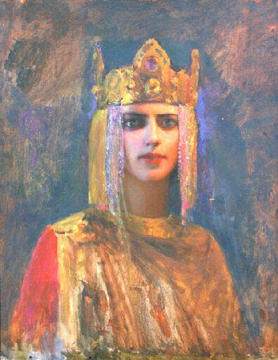 Dans l'ouvrage qu'il consacrait à G. Bussière (La vie et l'oeuvre de Gaston Bussière, peintre, illustrateur, graveur, Emile Bussière, éd. Ferroud, 1932), son frère dénombrait six tableaux inspirés du roman médiéval, dont trois ont figuré au Salon des artistes Français. L'Etreinte et La coupe exposées en 1911, puis La mort d'Yseult en 1912, ont succédé à une très grande composition (230 x 320 cm) intitulée Tristan et Isolde et datée 1896, moment où la musique wagnérienne enflamme Paris. Tous ces tableaux sont aujourd'hui dispersés, ce qui fait de cette étude un témoignage précieux sur la place originale du peintre dans l'univers symboliste de la fin du 19e siècle. La partie la plus aboutie de ce travail préparatoire est le visage d'Yseult dont la facture porcelainée rappelle l'influence académique encore proche de Cabanel qui fut le premier maître de G. Bussière