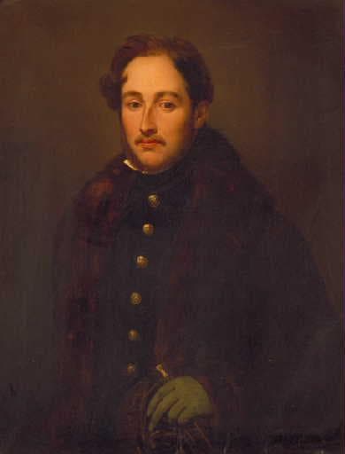 Il existe un dessin aquarellé représentant Charles de Nonjon, exécuté par Chaize en 1826 (inv.20346). Cet élégant jeune homme, dont nous possédons déjà un portrait dessiné, a été identifié comme Charles de Nonjon. Il est représenté ici dans un costume foncé où seuls les boutons dorés accrochent la lumière. Le peintre Nicolas Gosse, a choisi la sobriété de la mise en page et la nudité du fond, pour mettre en valeur son modèle. La lumière du tableau est diffuse, bien qu'accentuée sur le visage. Le portrait, daté de 1837, a sans doute été réalisé à la demande du baron James Du Teil, son fils, afin d'enrichir la collection des portraits de famille. F.G.