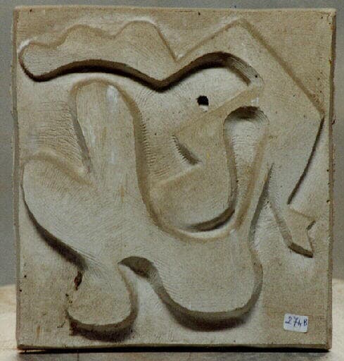 Figure pourour architecture de plage (envisagée comme panneau d'animation sur des meubles) ; Cette sculpture a été réalisée en céramique par Blouzard (Professeur de céramique à l'école des Beaux-Arts), elle est liée à 'Métope' (n°83 - 1/3) et (n°83 - 3/3)