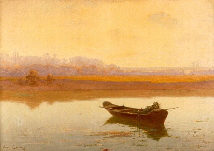 L'harmonie des oeuvres de Jean Laronze est à l'image de sa carrière artistique. Après des débuts dans le commerce, il fut étudiant à partir de 1880 dans les ateliers de Jules Adler ou de Bouguereau. Dès lors, il obtint la reconnaissance de ses pairs. Il fut un critique d'art de qualité mais son nom reste surtout attaché à la peinture de paysages. Inspiré par Millet et par les impressionnistes, Laronze va développer un style fait de nuances subtiles, de lignes souples et de compositions simples et dépouillées. Ses thèmes principalement ruraux prendront corps dans les paysages du Charolais