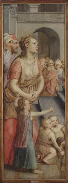 Né à Montfoort dans les années 1530, mort à Utrecht en 1583, il eut pour maître Frans Floris à Anvers - à qui les deux peintures étaient précédemment attribuées. Comme la plupart des artistes de son temps, il fait le 'voyage d'Italie' en 1572. Ainsi, dans ces deux volets, il suit les leçons des maniéristes italiens en utilisant des vêtements à la mode antique, en jouant d'une architecture monumentale où l'escalier se positionne en parallèle à la surface du tableau. L'élongation et la flexibilité des silhouettes participent de ce goût ultramontain des contrastes. Cet artiste introduit largement en Flandres le maniérisme toscan (Vasari, Salviati) et émilien (Le Parmesan) influençant toute la génération de maniéristes flamands de la fin du XVIe siècle