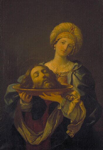 Cette oeuvre anonyme est une copie ancienne d'un tableau du 17e siècle, Salomé avec la tête de Saint Jean-Baptiste par Guido Reni, actuellement à la Galerie d'Art Antique au Palais Corsini à Rome. L'intérêt pictural de l'oeuvre réside plus particulièrement dans l'opposition entre le visage mort de Jean et celui de la jeune femme. Celui du Précurseur semble étonnement plus expressif que celui de Salomé qui ne semble exister que par le luxueux costume qu'elle porte. Les tissus, les bijoux et les broderies, les drapés de son vêtement sont comme autant d'injures au message et à la mort voulue infamante de son ennemi. NT