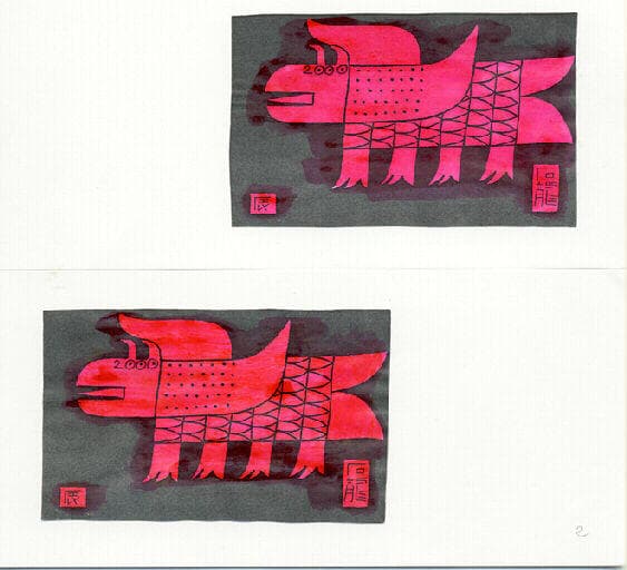 Deux monogrammes chinois représentent certainement l'un le titre, l'autre la signature de l'artiste.