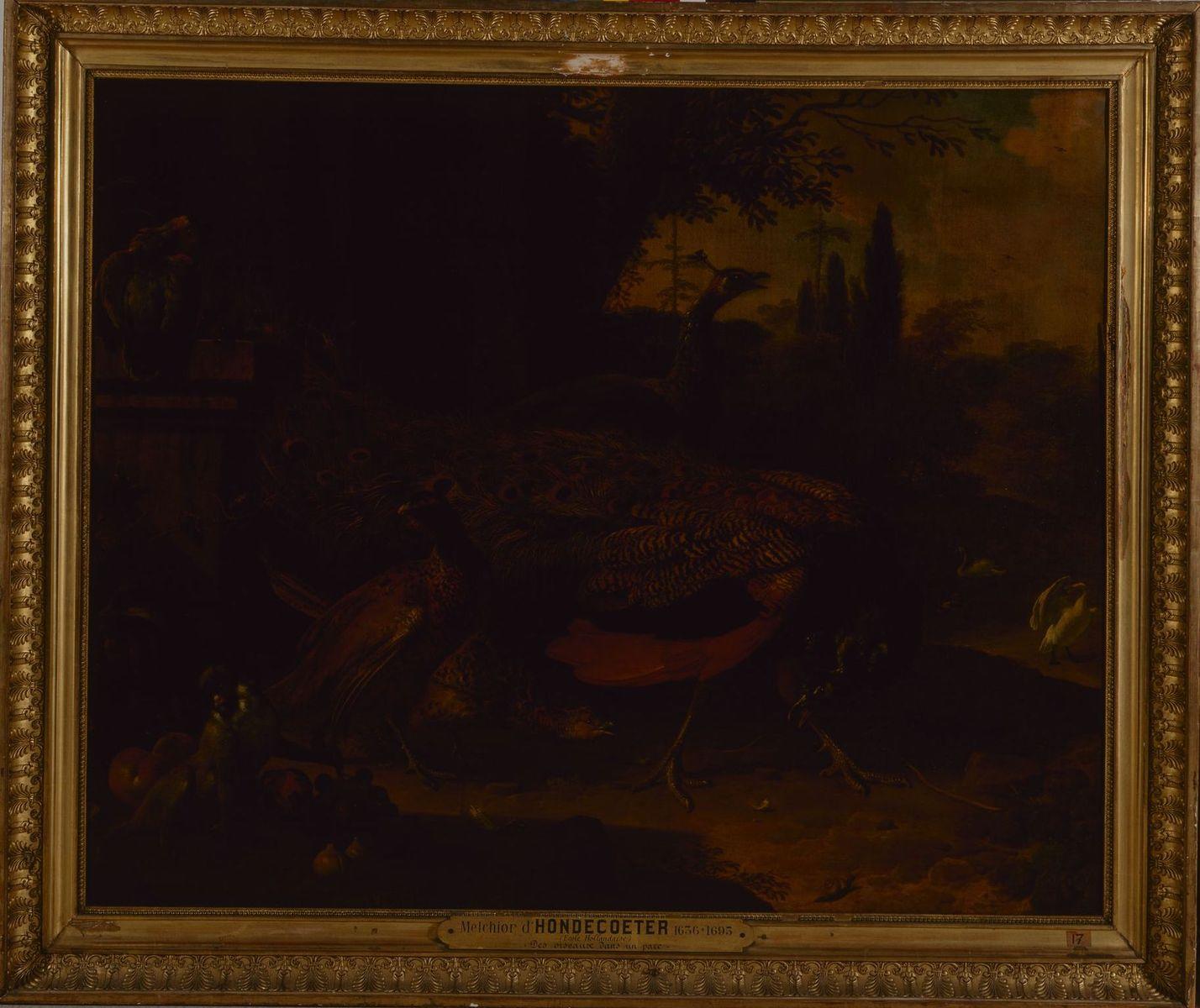 au centre, à gauche : translitération : M D Hondecoeter A 1685
