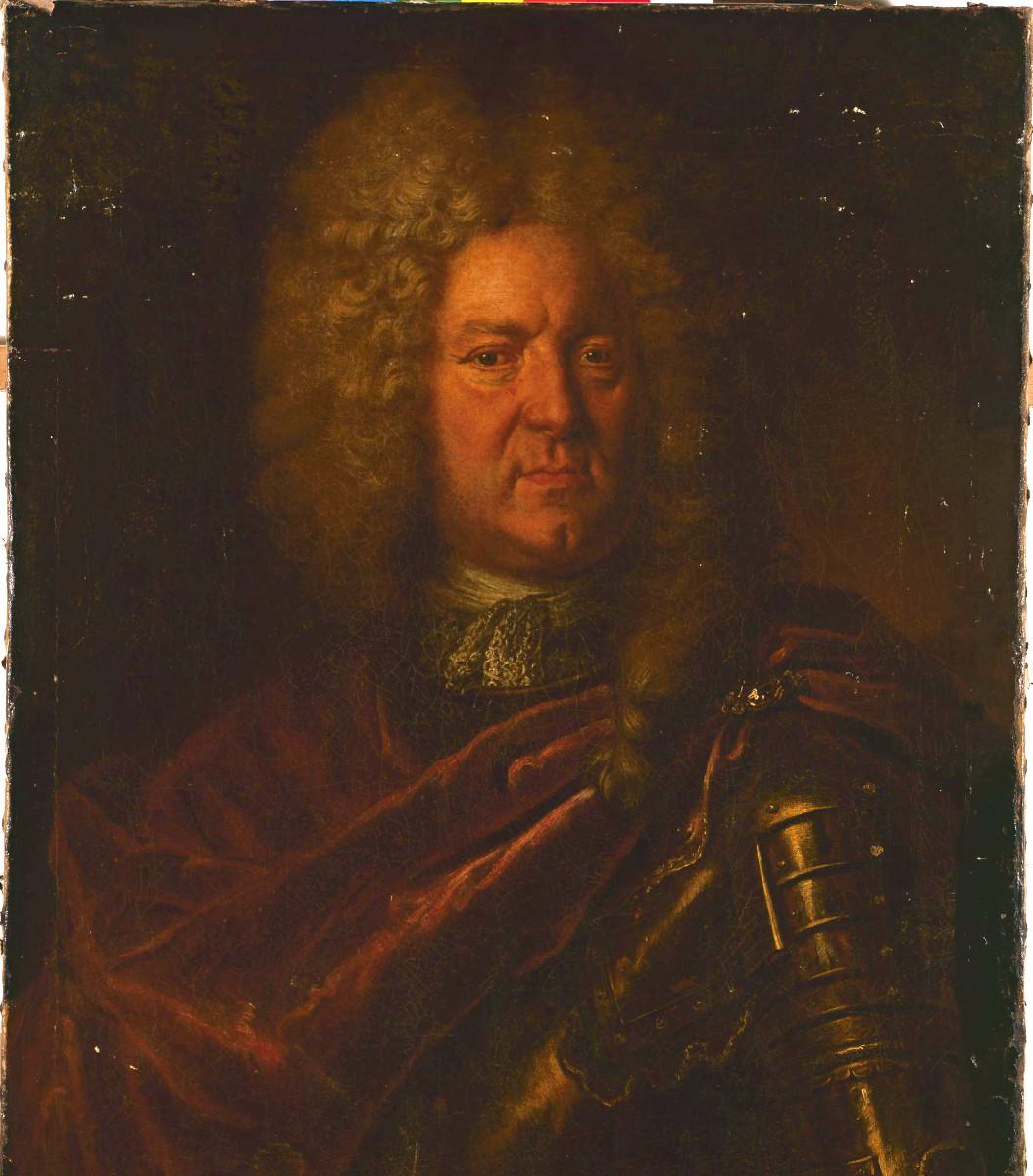portrait (homme : buste ; armure ; perruque ; draperie ; effet de tissu)