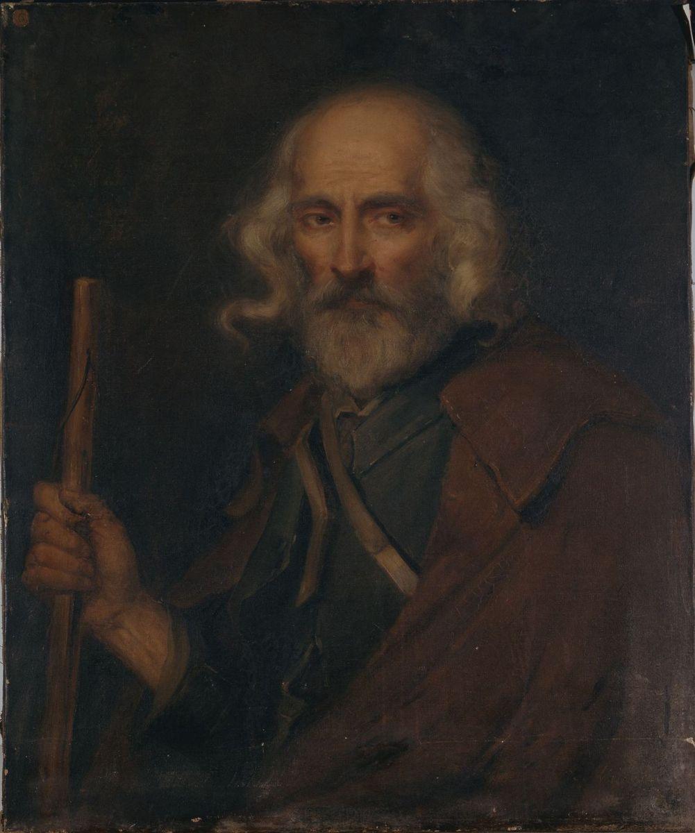 portrait (vieillard ; chauve ; barbe ; bâton ; homme ; mendicité)