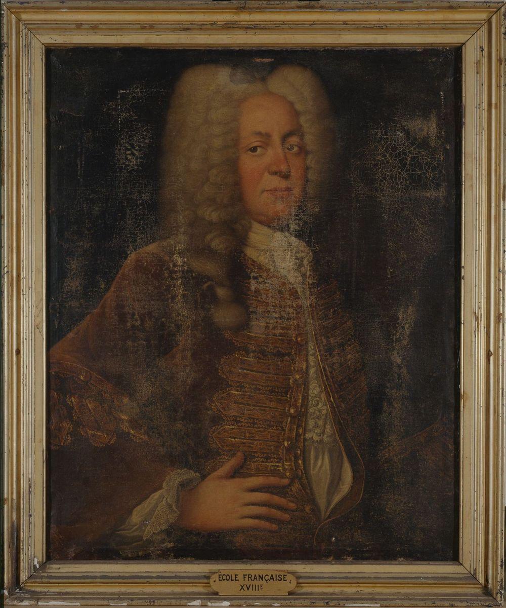 portrait (homme ; perruque ; veste : broderie ; cravate)