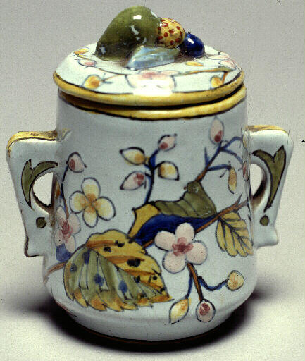 Pot : 54.550.1./Couvercle : 54.550.2. ; Cette pièce fait probablement partie de la Succession de Madame Antoinette Beau-Crampon, brue d'Alfred Beau (29 pièces, dont 11 petits pots, léguées en 1947)