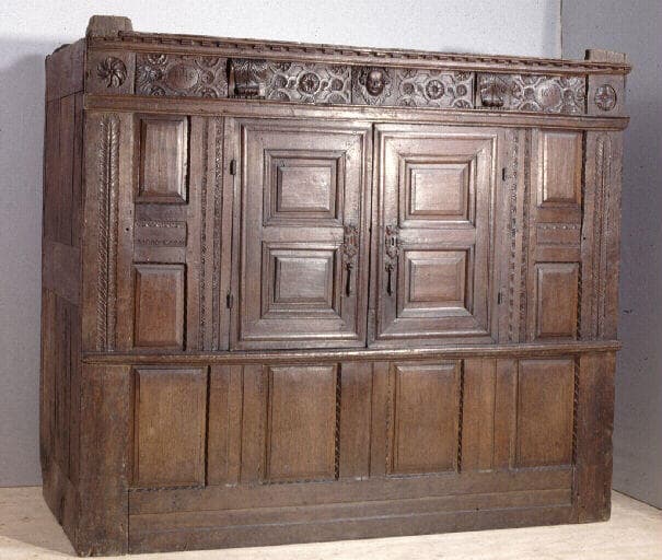 Apparue au début du XVIIe siècle dans le Léon producteur de toiles, la monumentale presse à lin tient à la fois du coffre - dont elle a la longueur et dont elle conserve le volume dans sa partie inférieure - et de l'armoire, dont elle possède, dans sa partie supérieure, les battants, doubles dans la plupart des exemplaires conservés, parfois quadruples. Dans le bas était entreposée la filasse, tandis qu'au-dessus, des tablettes 'pressaient'entre elles les toiles