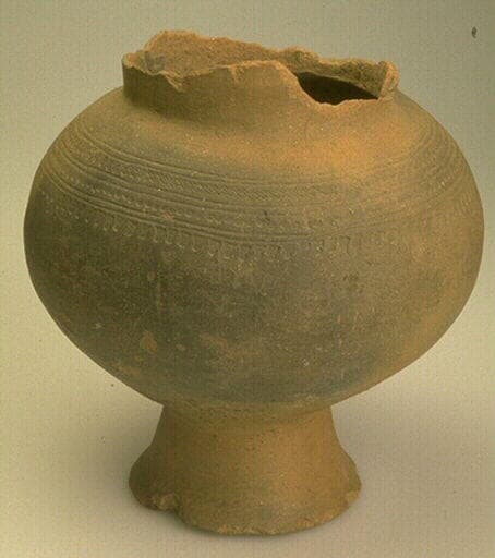 urne cinéraire ; Se rattache stylistiquement au Hallstatt final. La datation reste approximative, faite d'après la typologie générale, à défaut de contexte archéologique précis.