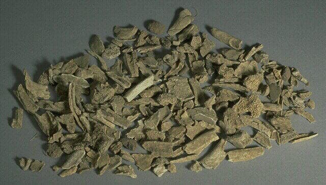 Ensemble d'ossements humains, très fragmentés. Quelques fragments de tessons sont également mêlés à ce lot.