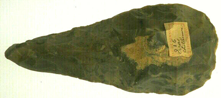 Taille au percuteur dur et tendre. ; Biface dont la forme est lancéolée. Le talon est assez épais et porte des traces de cortex. La pointe devient longue et élancée. Les bords sont rectilignes, et l'arête tend à le devenir. Silex de couleur brune.