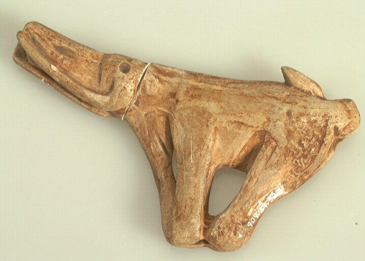 Moulage d'un manche de poignard en ivoire figurant un mammouth.