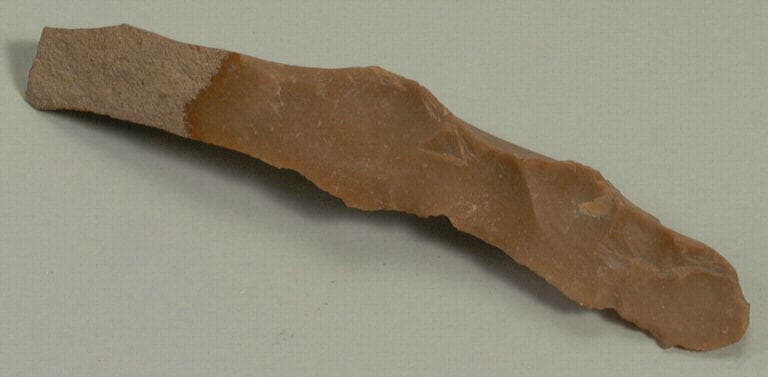 silex jaune ; Lame de silex aux tranchants peu émoussés.