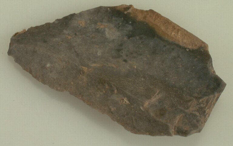 silex gris. ; Eclat de silex au talon lisse.