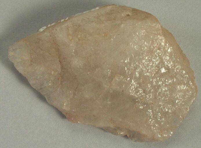 Eclat de quartz laiteux et non hyalin comme indiqué dans le registre d'inventaire et dans les catalogues.