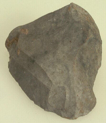 silex gris. ; Fragment de grattoir au tranchant émoussé.