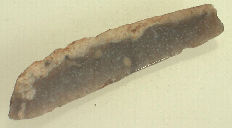 silex gris. ; Lamelle de silex à un côté plat et un côté convexe.