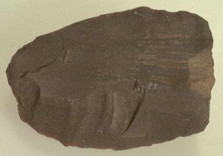 silex gris. ; Raclette sur éclat de débitage.