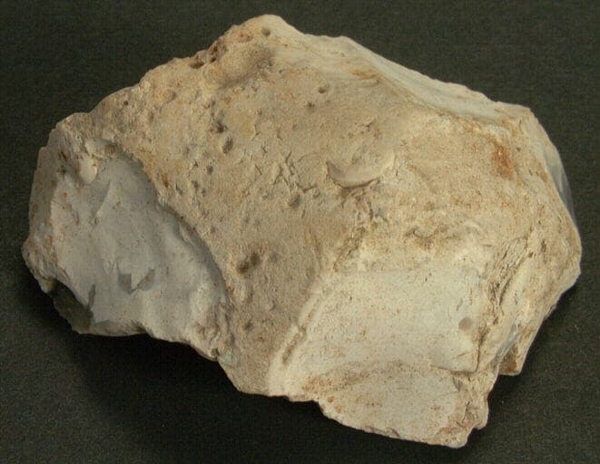 Nucléus blanc et gris à plans de frappe multiples.