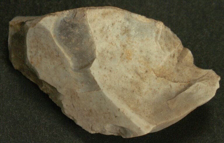 Fragment de silex banc et gris.