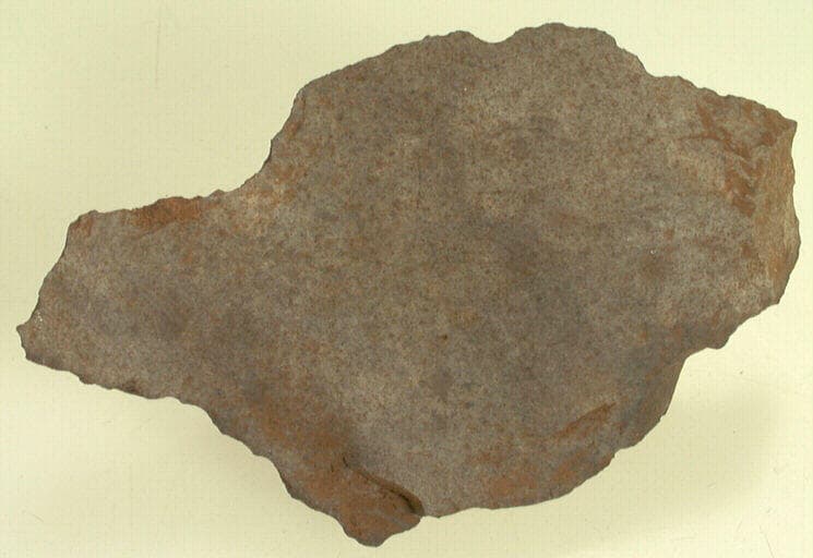 silex gris. ; Racloir à encoches continues sur éclat de débitage au talon lisse et à un côté plat et un côté convexe.